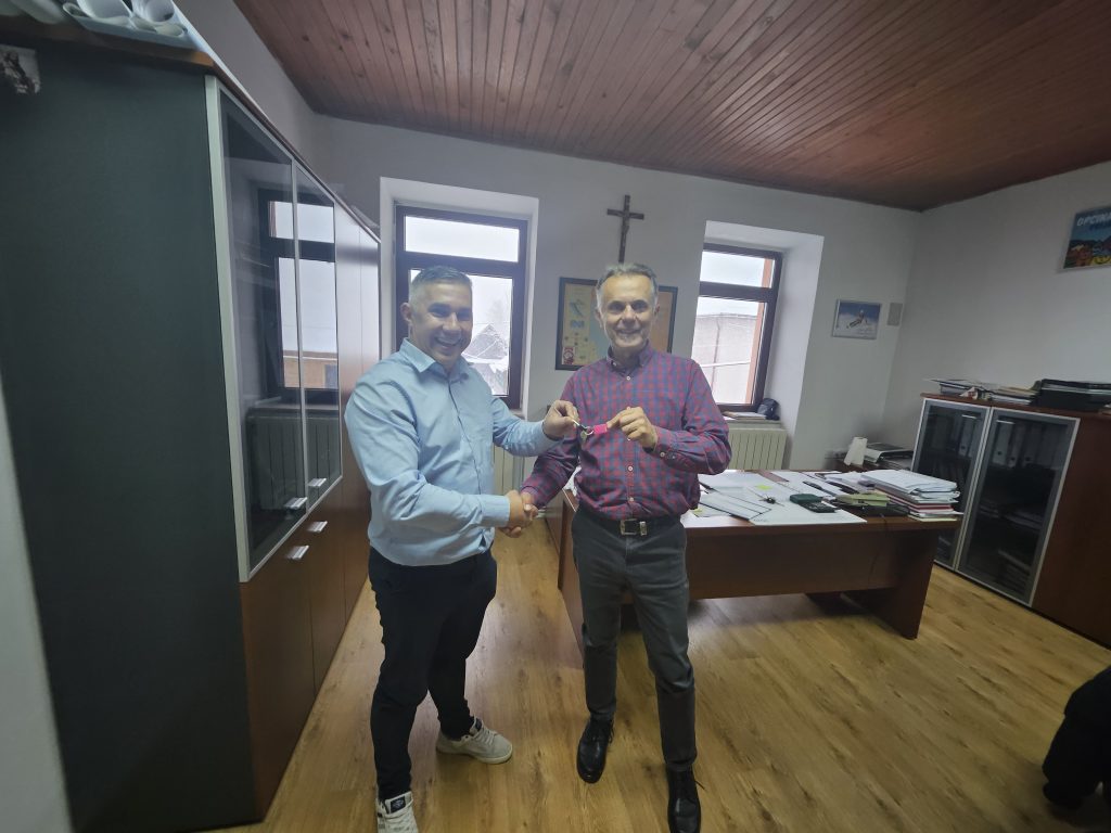 Stjepan Marcetić, direktor tvrtke Techno Win Machine iz Sesveta, načelniku Općine Mrkopalj Josipu Brozoviću predao je ključeve novog multifunkcionalnog komunalnog stroja.