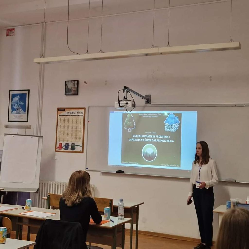 Državna prvakinja, učenica 4a razreda Meri Milošević na natjecanje se plasirala svojim istraživačkim radom na temu “Utjecaj klimatskih promjena i varijacija na šume čabarskog kraja”. Andrija Janeš, također učenik 4a razreda osvojio je treće mjesto s istraživačkim radom na temu “Utječu li ekonomske, društvene i političke prilike drugačije na ljude različitih ekonomskih i socijalnih statusa?”